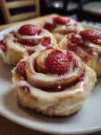 These rolls combine fresh strawberries and creamy cheesecake filling with classic cinnamon roll flavors, creating an irresistible dessert that delights every palate.